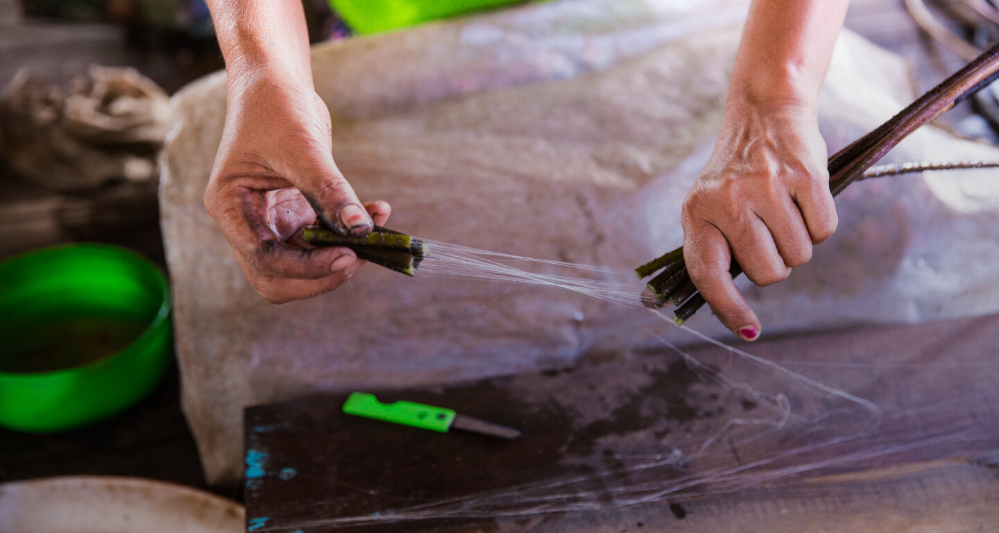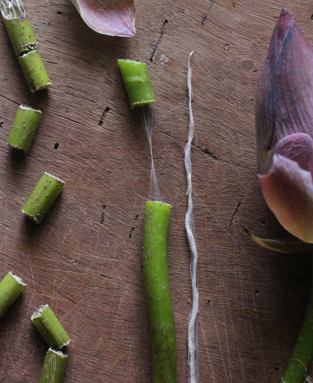 Lotus Silk is a rare, plant-based textile crafted from the delicate fibers of the Nelumbo nucifera lotus stem. Unlike traditional silk, which is harvested from silkworms, lotus silk is vegan, biodegradable, and completely free from animal exploitation. The fibers are manually extracted and spun by hand, requiring intense artisanal effort — thousands of stems yield only a few meters of thread.